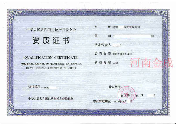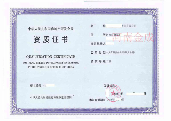 房地產(chǎn)二級(jí)資質(zhì)證書(shū)