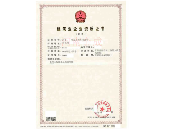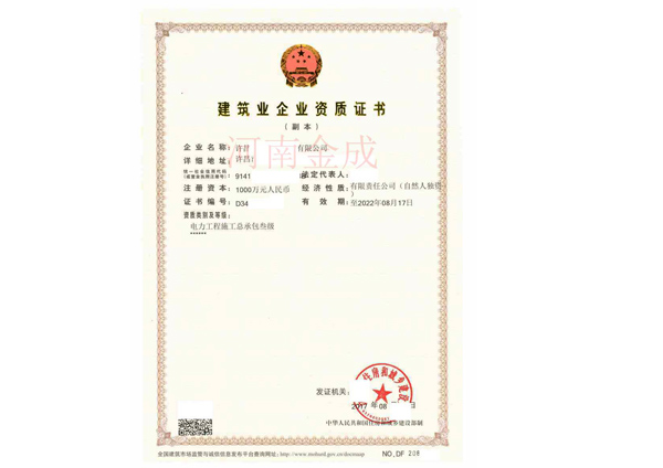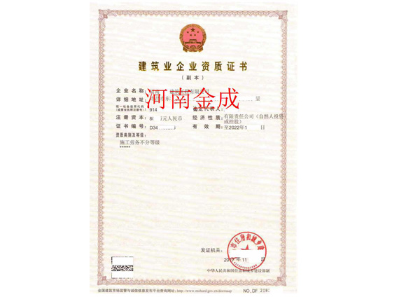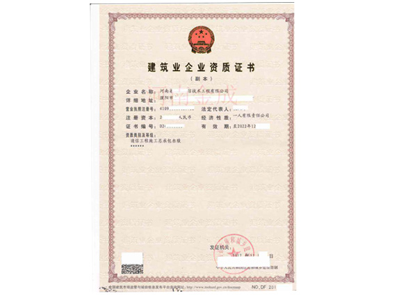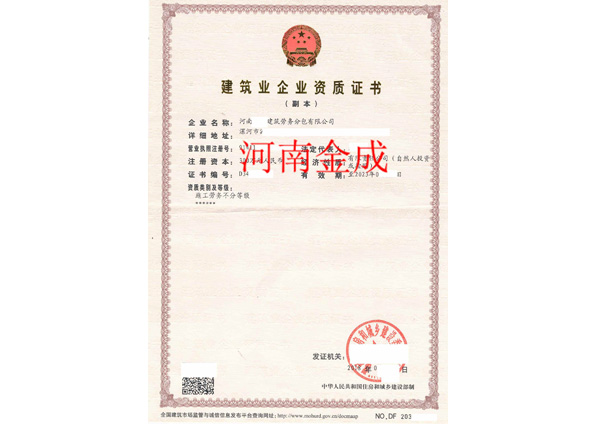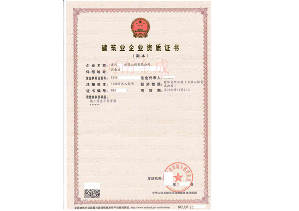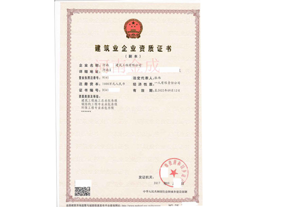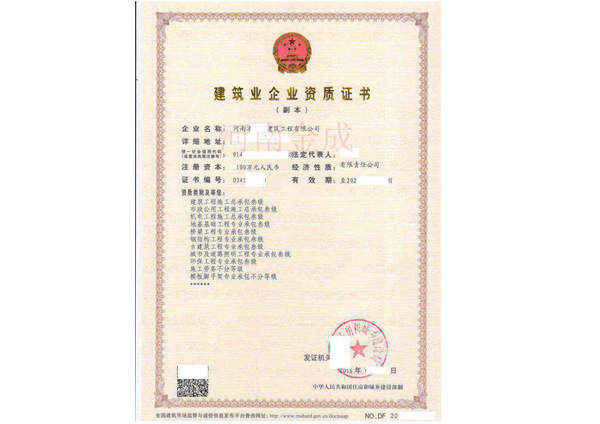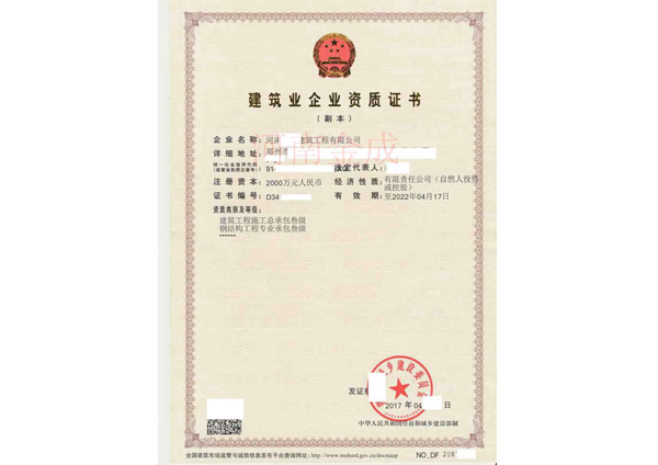 建筑業(yè)企業(yè)資質(zhì)證書(shū)副本