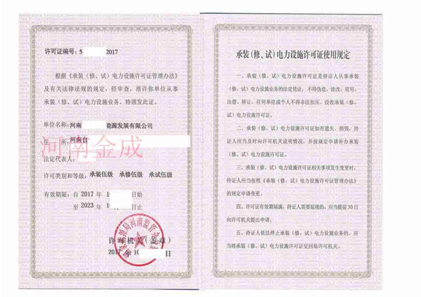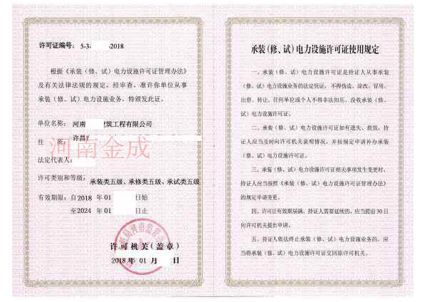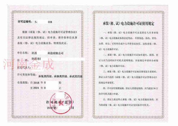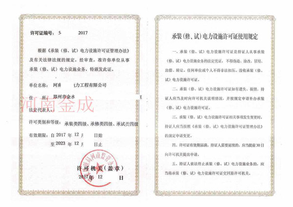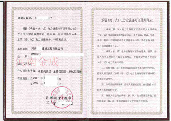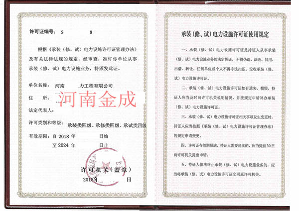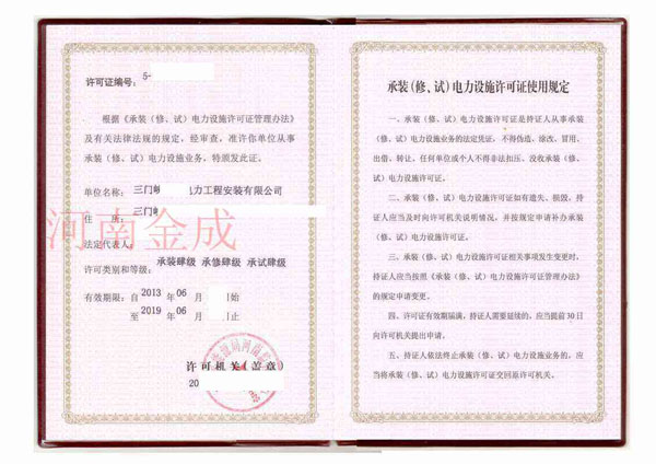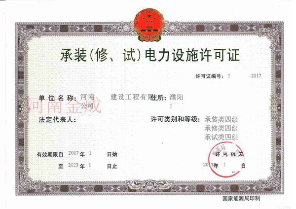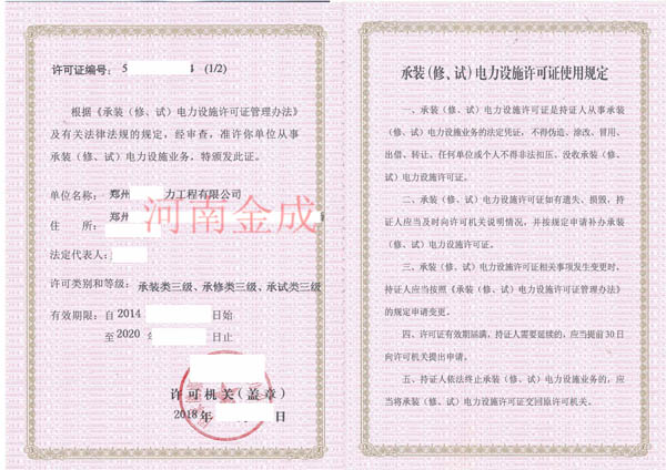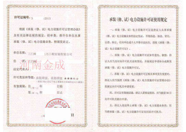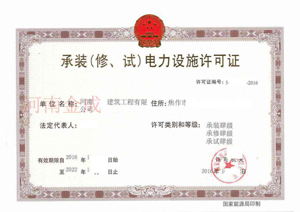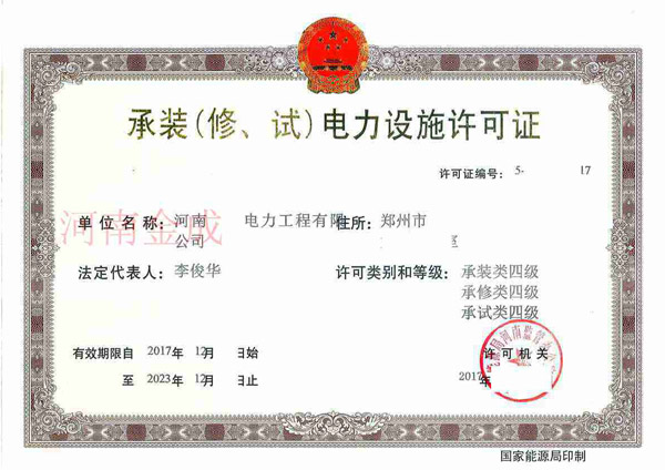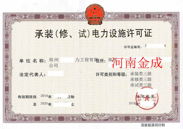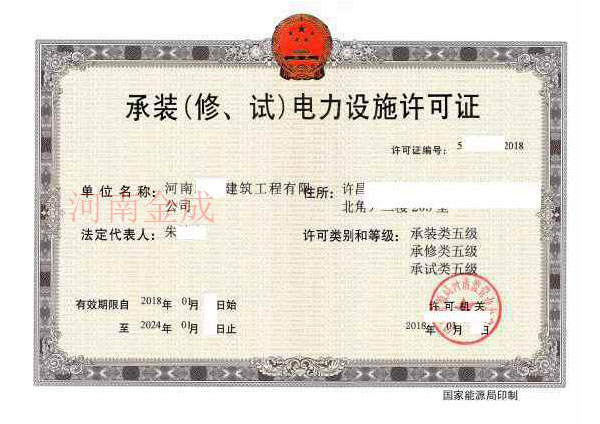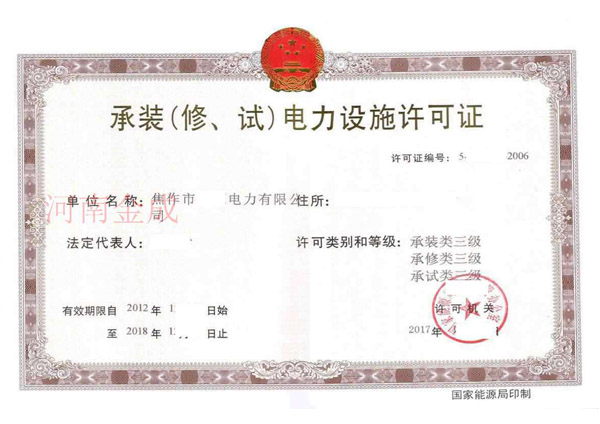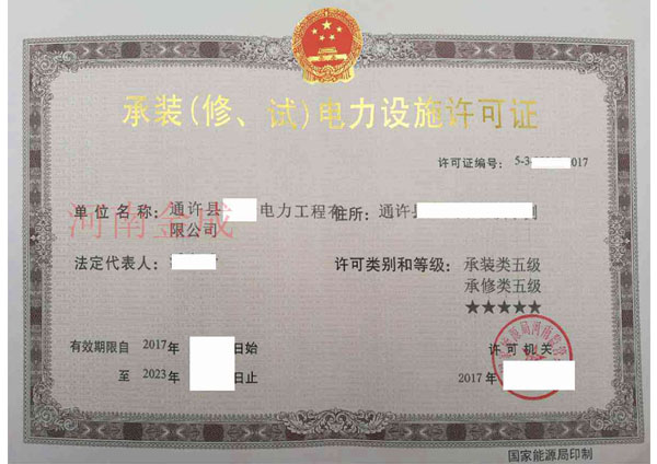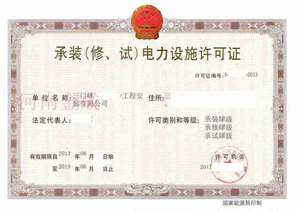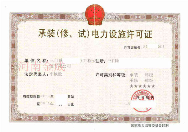 承裝(修、試)電力設(shè)施許可證