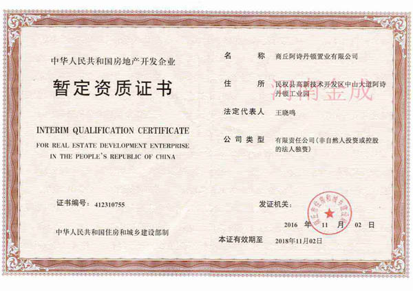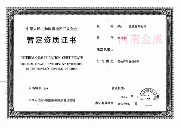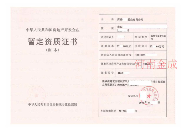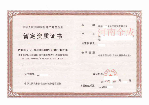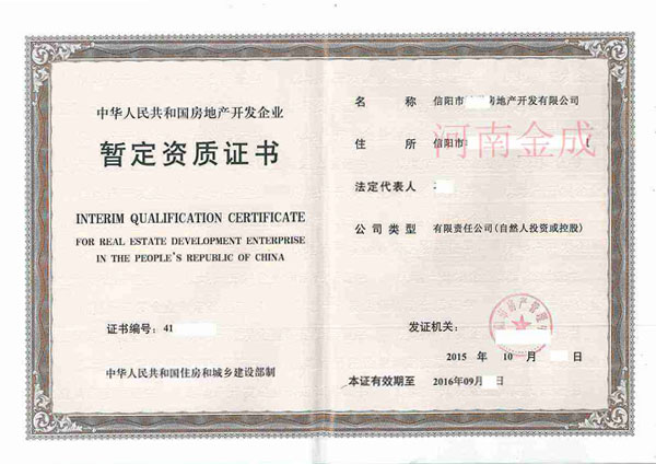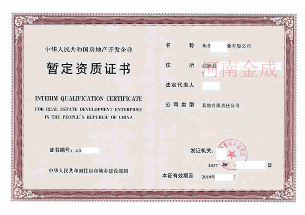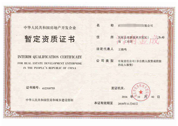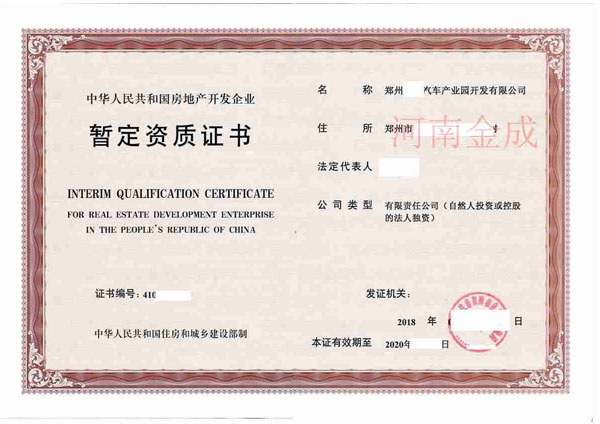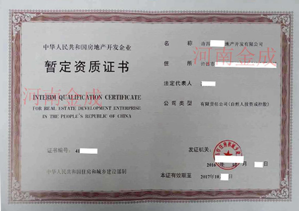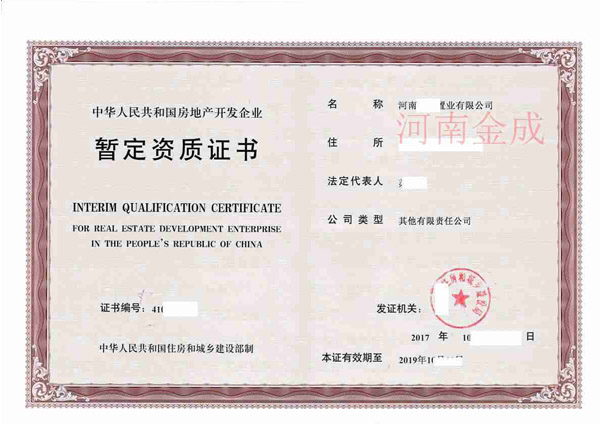 房地產(chǎn)暫定資質(zhì)證書(shū)