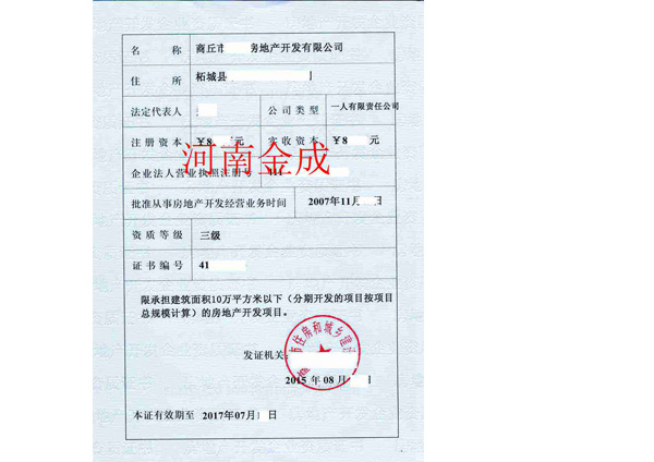 房地產(chǎn)三級(jí)資質(zhì)證書(shū)