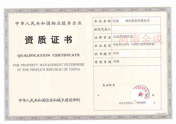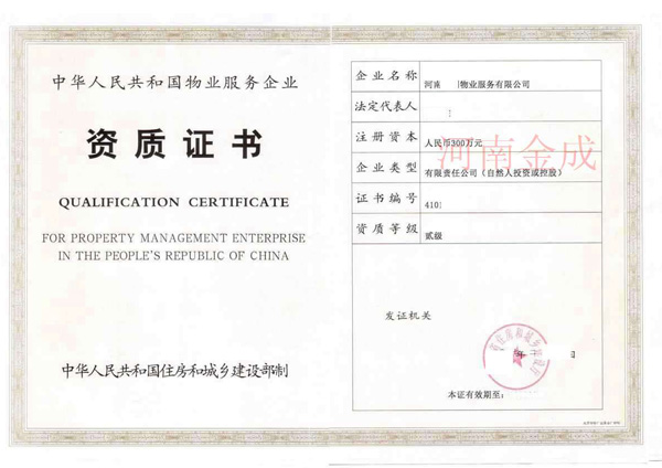 物業(yè)三級(jí)資質(zhì)證書(shū)