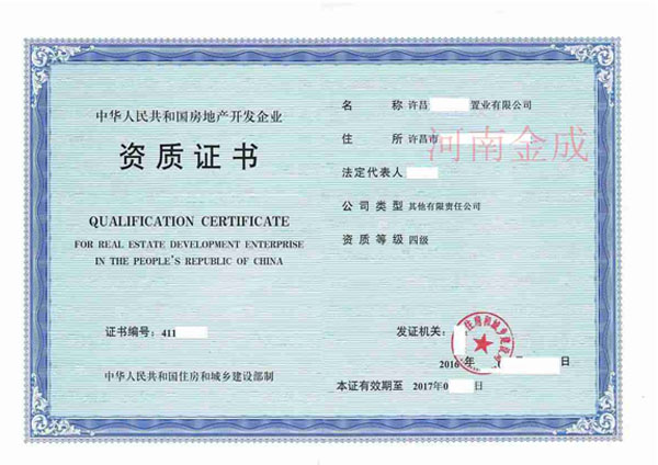房地產(chǎn)四級(jí)資質(zhì)證書(shū)